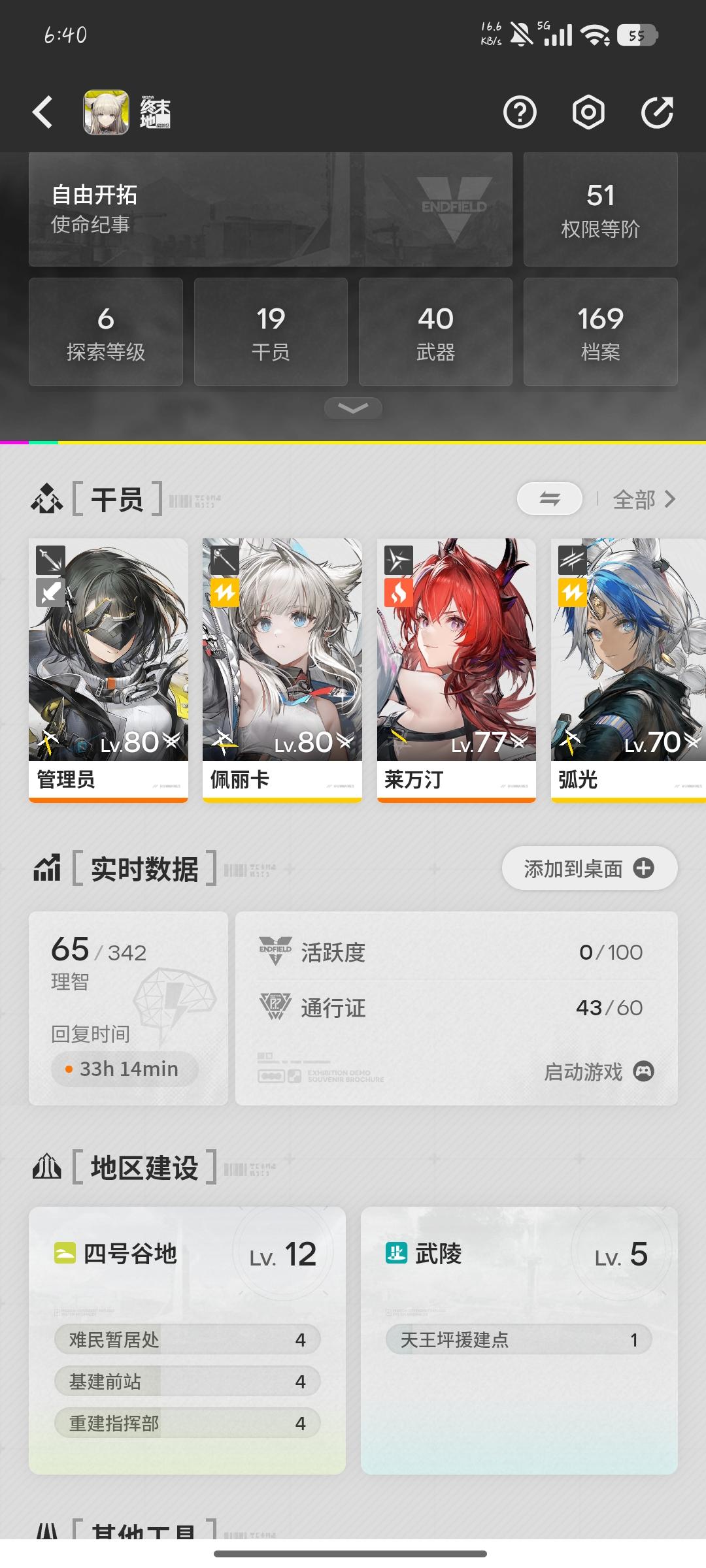 剧情. 谷地这一章主要是让你学习玩法(枯燥,还往里面塞基建当主线)以及讲述世界观和一大堆谜语人(包括牢管自己,那个0号计划) 谜语人是最烦的,讲一半就不说了,什么你自己去寻找答案(没想好就没想好埋一堆坑干什么😡) 武陵就好多了,庄对牢管的爱(牢佩是谁?不认识🤓)武陵剧情挺有意思的,毕竟谷地面临危机气氛比较沉重,剧情也开心不起来(奶龙那段还不错)