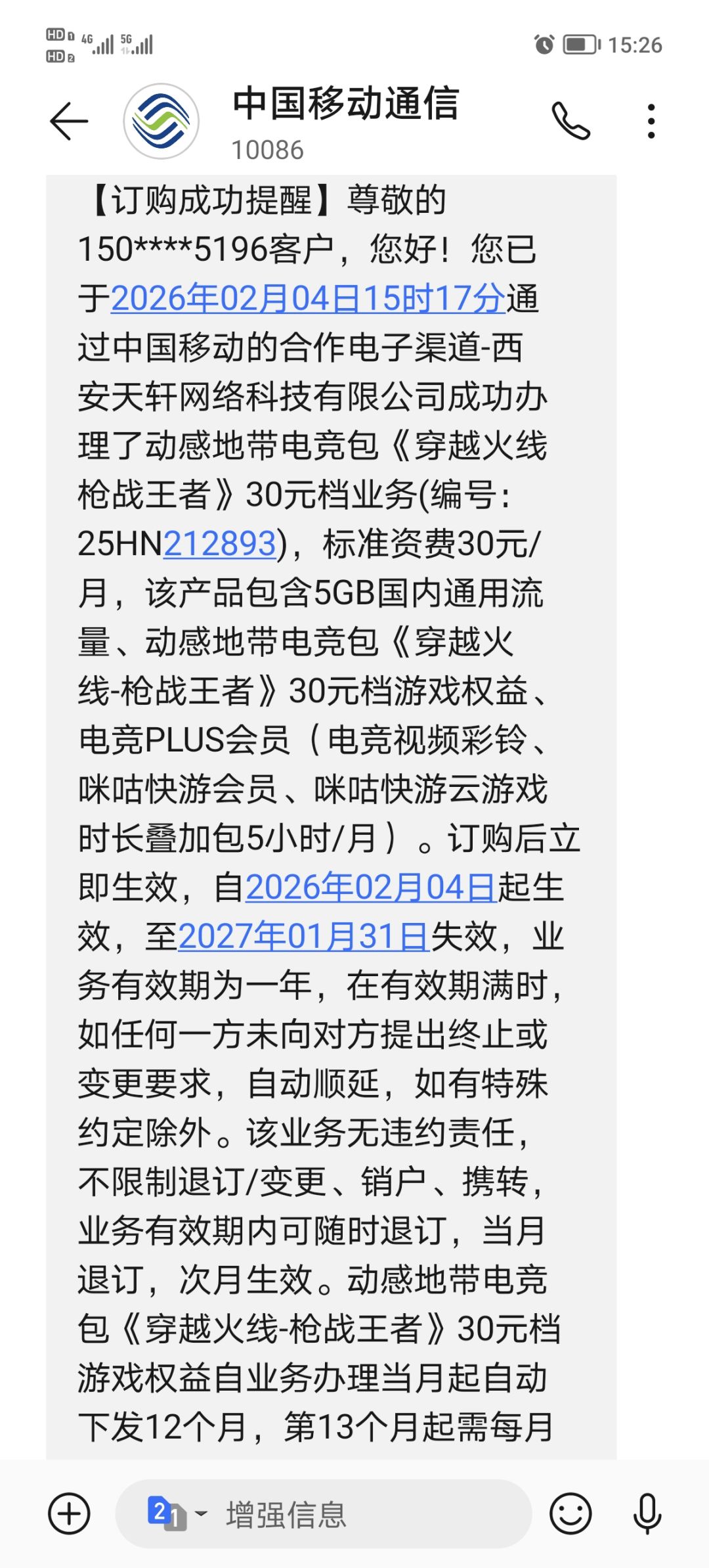 下载好后启动游戏,直接要我手机登录,然后输完手机号输完验证码后,直接给我秒定了一个什么枪战王者30块钱每月的服务,而且直接把钱给扣了,立马退订还得下个月才能生效。而且还有服务期,一年,你要是不注意看,一年以内你不主动取消它就会自动顺延