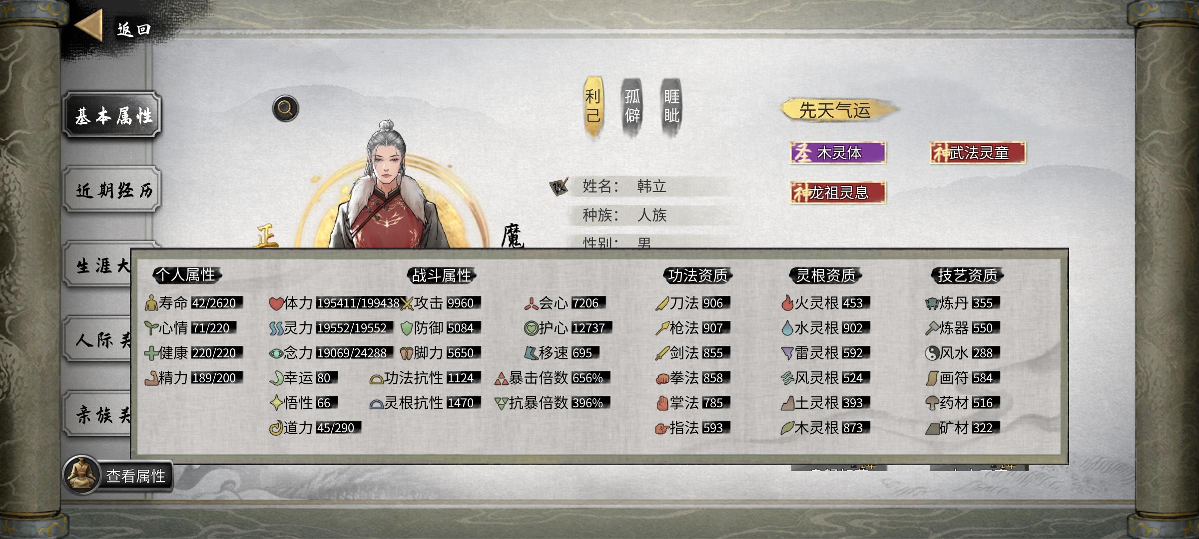 走了很多弯路,开局选的复活鱼以为强无敌可以多次复活,结果很鸡肋,他不是那种原地复活继续干,而是让你复活重新打,我还不如sl呢。。。可能玩洪荒难度比较适合。玩之前就听说要一直重复刷刷刷,很费时间,但是又怕失去游戏一些体验,毕竟第一次玩,所以我只开了几个简单插件,我以为后续不能改了,就一直硬着头皮刷到了羽化境界,包括但不限于很多境界刷功法,各种技能,刷词条,刷器灵,刷材料,刷道点等等。羽化后期了才发现可以加插件,尼玛,根本不用刷的其实,一套心法功法直接原地升阶,词条一刷全满,游戏体验拉满,可惜我已经快游戏结束了![[表情_惊恐]](https://img.tapimg.com/market/images/48b4972c071bcb2f7aa4090588ef01a8.png)