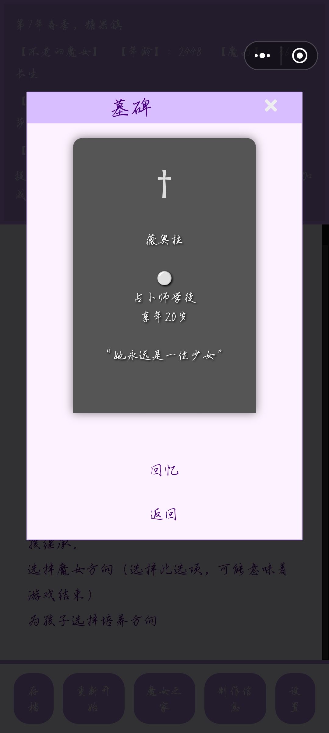 复活过母亲,但是想了想还是没把魔女传回去,而且母亲的复活体早早离世了,不到四十岁,这可能就是天意吧。最后找了个粉色头发粉色眼睛的孩子,第一世她不愿意,后来跑去成了救世主,第二世,我把她复活之后,孩子终于同意了,没办法她太聪明了。