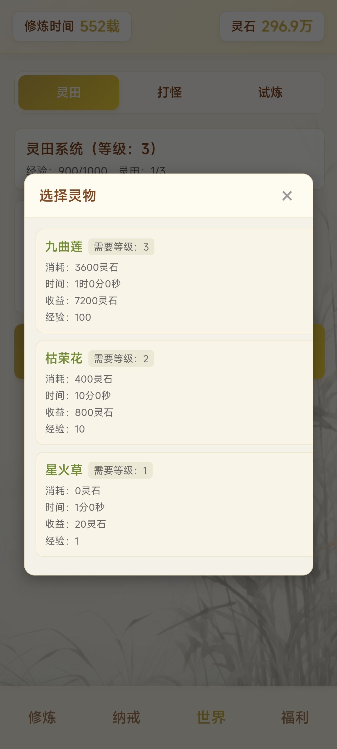 攒钱开灵田 每天10w灵石 300w灵石就是30天