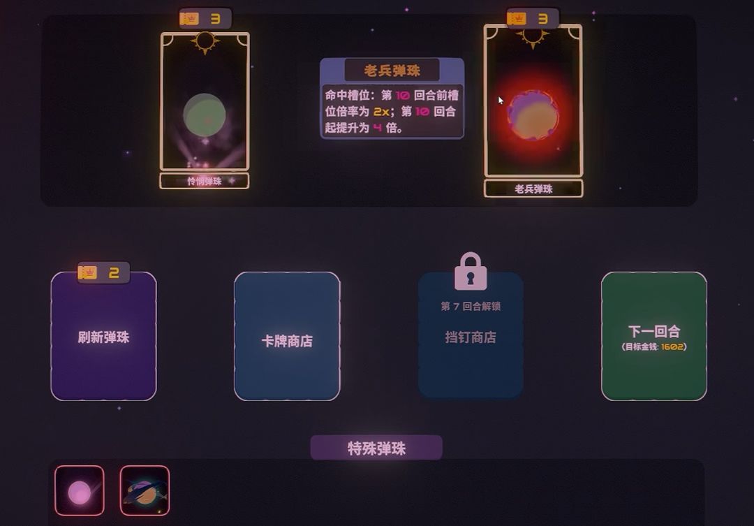 我们可以尝试不同流派打法,尝试购买触碰有增益效果挡钉时可获得一定钱币,随后通过增加弹珠数量,以及将整个挡钉盘全部加上效果,通过挡钉也可能赚钱。或者尝试增加每颗弹珠所拥有的价值,这样就将原本固定的数值变成了无限成长的潜力股。亦或者直接把用卡牌的效果,让掉入低倍率的卡槽的弹珠可以额外获得来自总金额的部分,这下可能中心最低的槽位赚一颗的钱,都比外围高倍率的槽位高出好多。