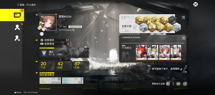 其实也就是建议策划能够给更多的抽卡资源,目前51级之后就是刷材料,每天都长草,如果能够出更多有趣的活动就行了,当然主要是为了更多的抽卡资源,你如果不想让玩家只想着抽卡而玩游戏,那你就没必要去做成二游池子,一方面有个单机梦,一方面又想要二游流水,既要又要会让游戏舆论和玩家体验都不满意