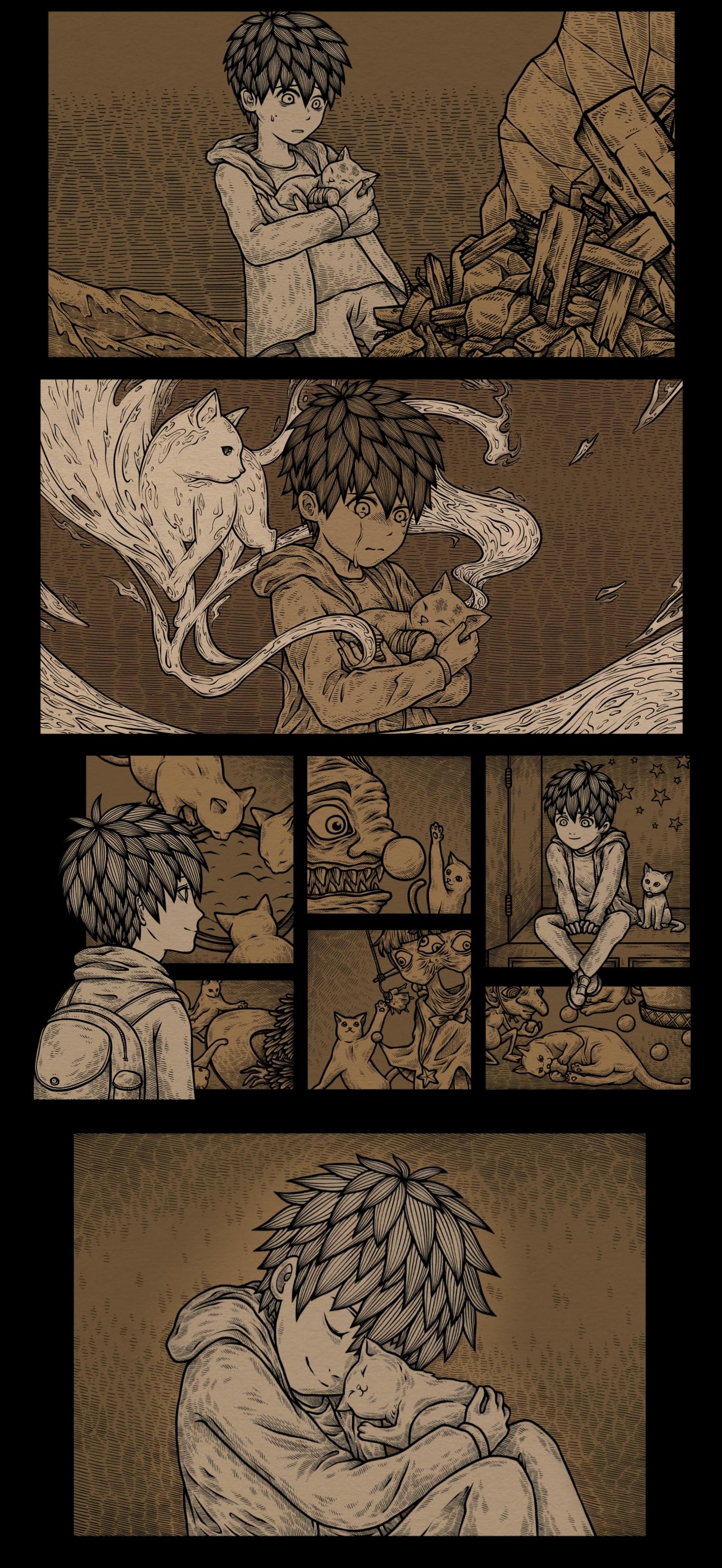感谢小猫一路的陪伴 本来害怕的心绪在看见那么小小一只散发着淡淡荧光的身影时消失得无影无踪。对于剧情的解读我也只能猜到个半斤八两,不过这类游戏有意义的地方不就在这里么,不必要一定读懂了什么,只是在小猫的陪伴下走过这么一段路,也就足够了。