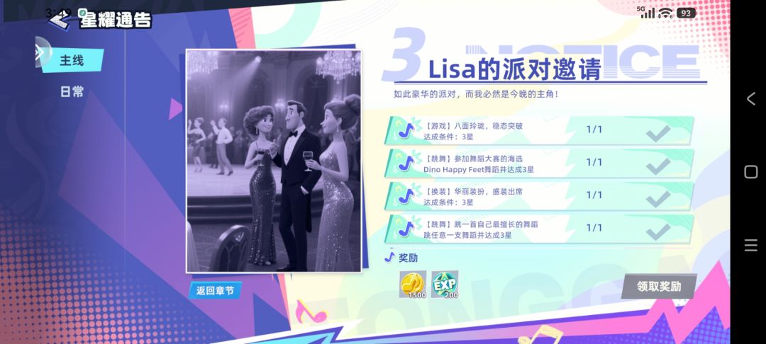 跳舞共鸣感觉强,而且是个还很有趣的游戏!就是第二章主线的最后一个任务我做了第一和第二个动作都没有得分;好难最高10255分二星。我又不是专业的跳舞的,希望你们官方能降低点难度,与识别更精准动作!终于通关了第二章!第三章通关了后,奖励不能领取奖励!是怎么回事啊?