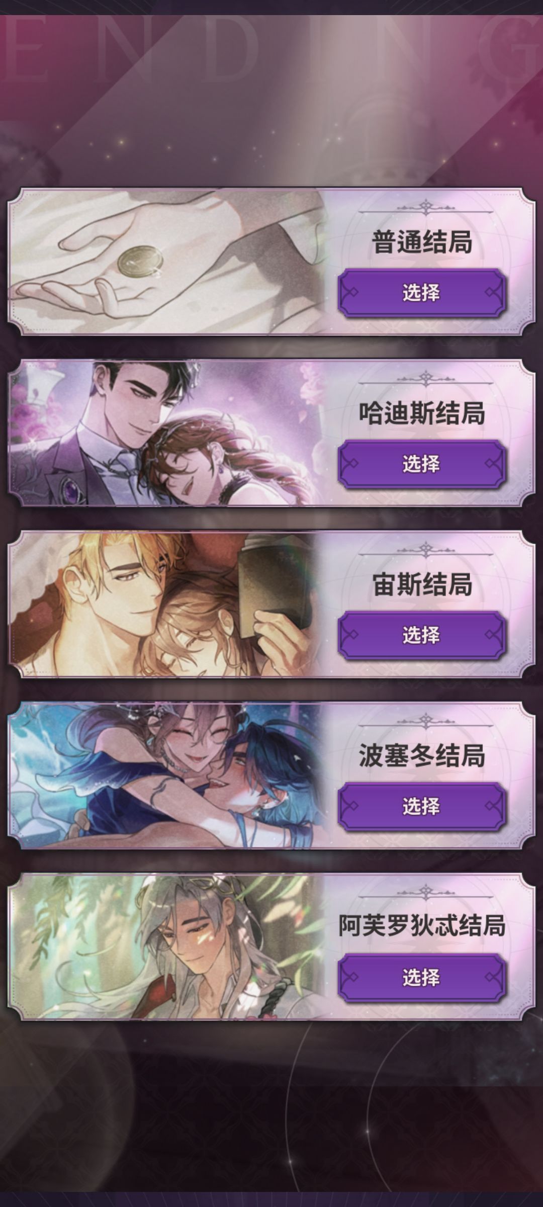 每一个神都很有自己的特点吧 感觉宙斯是比较难攻略的 我最开始攻略完成的是波塞冬后面就是哈里斯和阿芙罗狄忒(个人介意先把主要目标对准宙斯 尤其是想过和宙斯的ending的)我第一次宙斯的好感还差一点 虽然我第一个爱上的神是哈里斯 因为哈里斯简直是最最最戳我XP的 因为他一直都是很尊重我的选择吧 而且我在和其他男主在一起的时候 他也会很识趣的不打扰吧尤其是在最后过剧情的时候 要选那个最伟大的神的时候——(画重点!!!)选最伟大的神是决定你最后会跟谁在一起 会触发和谁相关的结局 只能选一次 就是你得先深思熟虑 (如果你不想在重新过一遍的话 但是个人建议 因为他看了40个广告就是可以不用再看广告的 前期你的宝石还有钥匙 都要看广告 所以我觉得如果有时间的话 可以选择全部剧情都过一遍)如果你最后选的是其中一个 想体验和其他男主的ending你就只能选重新开始 然后再重新过一次剧情线 一共是有15个章(应该是的 我没有记错的话)