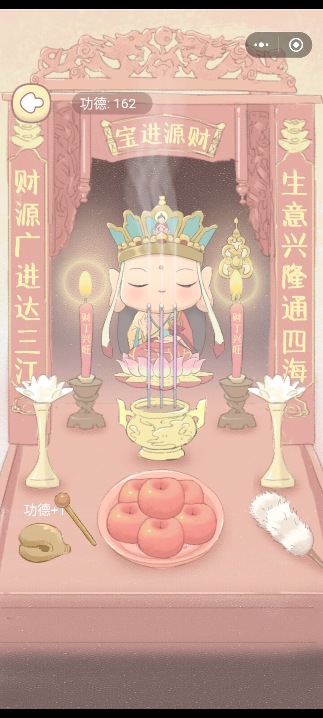 与其说是个游戏,不如看成是一款日历软件。有比较详细的新手引导操作,上手不难。主要功能是拜仙和看气运两个,前者需要设定一系列复杂的部件设定,包括供品、烛台、香等多种道具,界面左下还可以敲木鱼增加功德值,就跟电子木鱼的功能一样。看气运总计六种,每一种一天只能看一次,只有连续三次圣品才能解签获得文本信息,能否连续圣品非常看脸,建议洗把脸再抽。