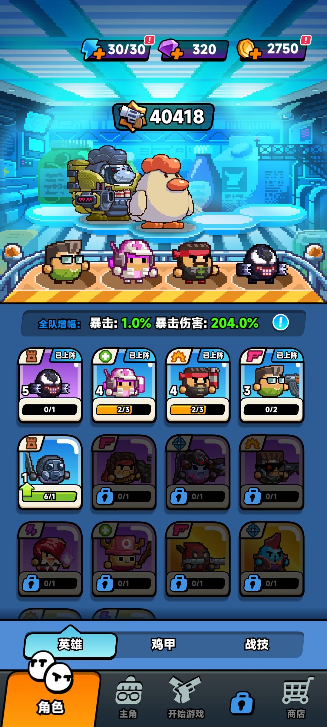 2D像素风美术品质较好,界面结构常规,UI品质较好,有一定动态效果。角色造型看起来都像鸡蛋,老奶奶入场用了领鸡蛋的梗,其他英雄也有独特的入场宣言。