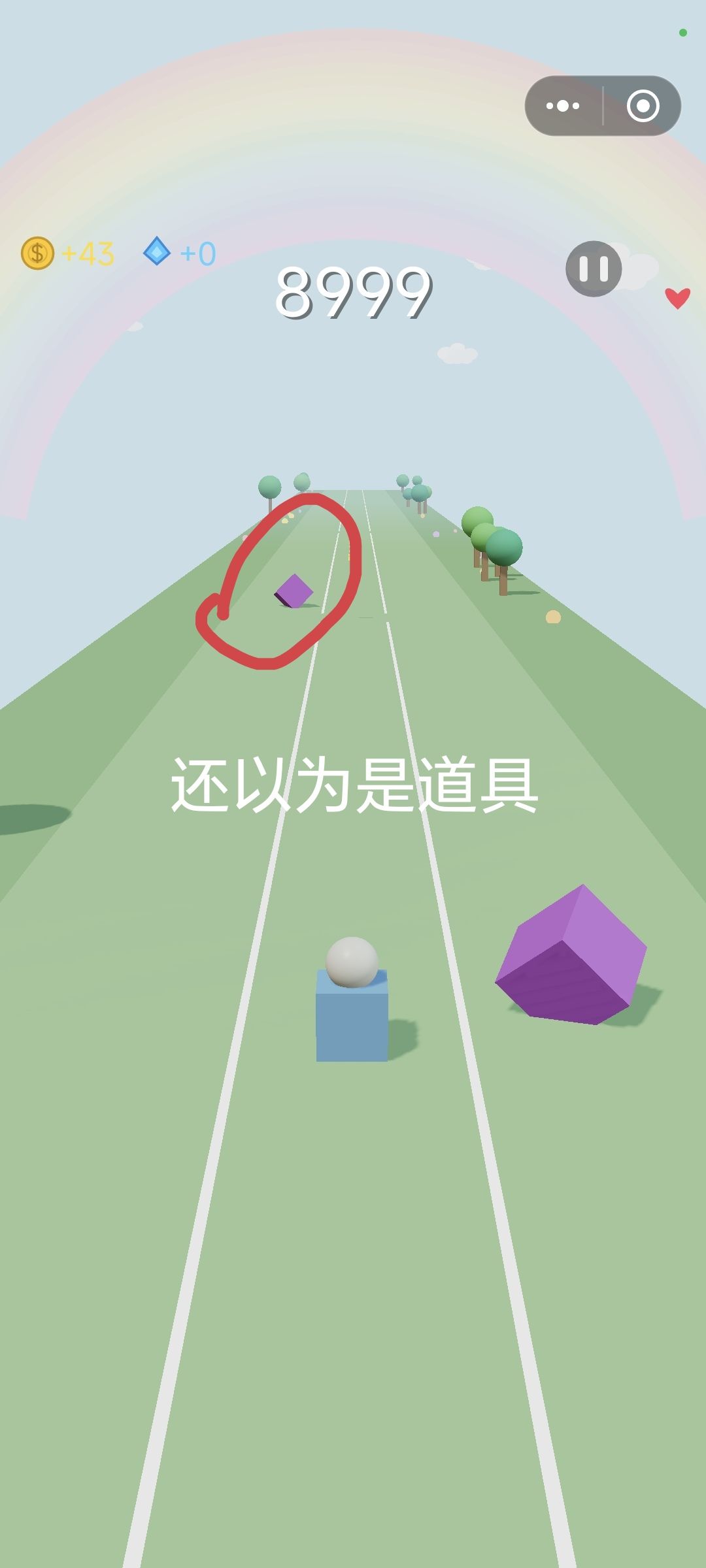 2. 最影响体验的是:障碍物和道具长得太像了,经常看着像加分道具,结果一碰到就失败。分不清这是设计上的疏忽,还是刻意这么做的,但对玩家来说,很容易误判失误,体验很不好