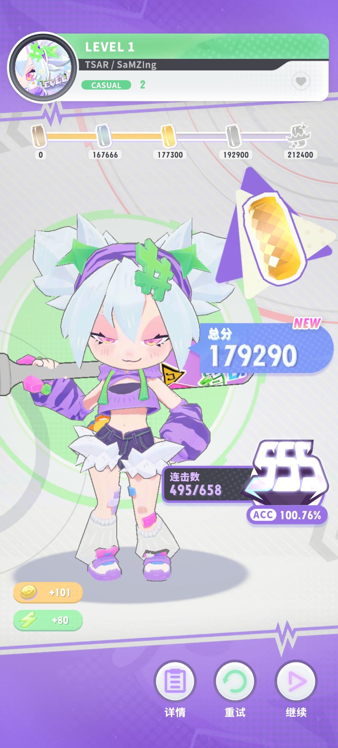 相当有新意的游戏,把跑酷和音游结合在一起了,但是手法和音游是一样的,所以特别好上手。画风和曲风我都很喜欢,角色建模也很美。没有延迟,手感也很好,是带剧情的那种,设定目前相当感兴趣。比过去玩的纯音游有创意多了,刚开始玩就爱上了😘加油