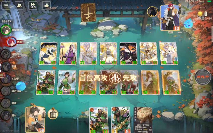 你说选上一个刘禅,技能是【放权(最左侧护卫连击+护卫+不屈)】,这时候配合上专养数值怪的蜀国还有一刀能劈三个的关二爷,这下斩对面六将酒还是温的。
