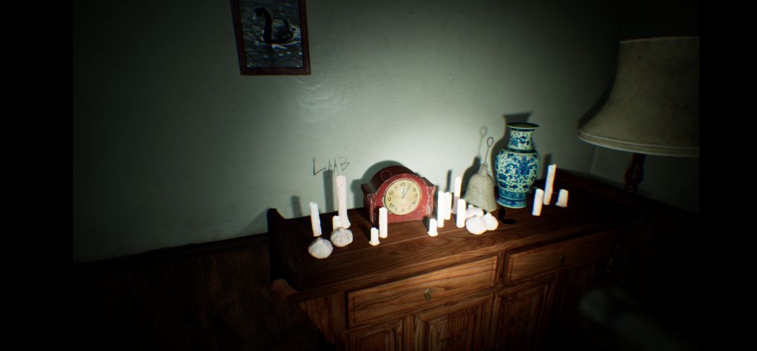 3D写实画风,几乎看不到任何界面和UI,沉浸感和拟真度都很高。当画面黑暗下来之后,对于未知的恐惧逐步加深,手电光只能照到很小的区域,和现实世界理解有偏差,突出恐怖感。摄像机镜头也有一定模糊处理,就像是镜片上有灰尘一样,除了中心区域外,有一种朦胧的视觉效果。场景内部分物品可交互,操作体验有些一般,主角虽然有身体,但并没有伸手出来拿物品。