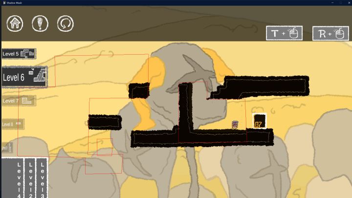 2.感觉旋转能力没太大作用,我全程通关没有刻意转过,仅靠遮罩的移动就可以轻松通过,所有旋转的必要性不是很高,如果专门为旋转后的形状做关卡又有些太“唯一解”了,会整的游戏很难,不妨考虑优化或移除这一设定。