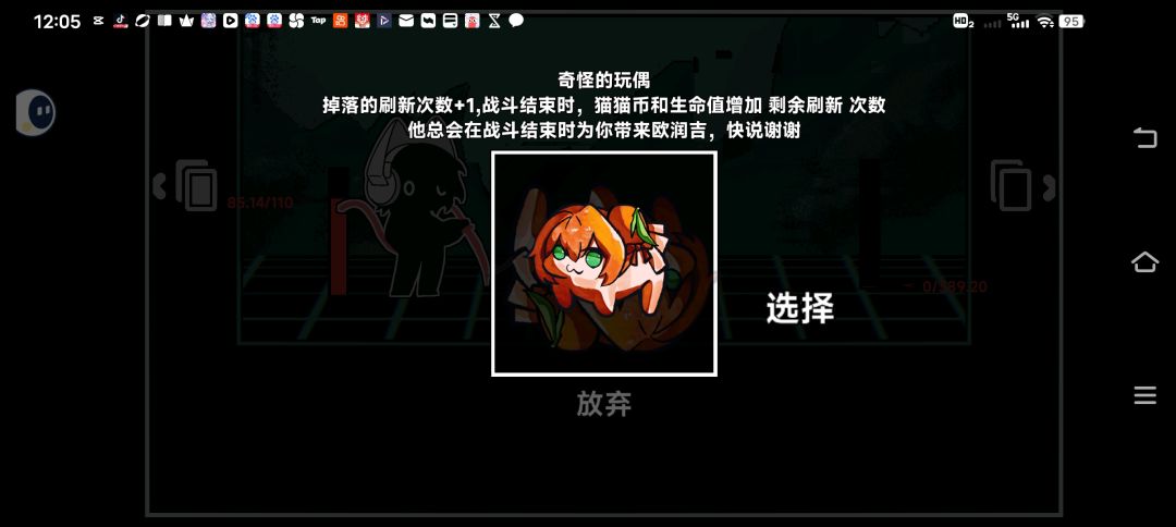 玩法采用了经典的卡牌但半回合制,(指可“干扰”对手回合是否使用“意愿”)我挺喜欢这种baff不随时间消退的设置,可以爽叠,不管回合因素。多数时候打怪叠个三位数故障也常有,不过现在的流派有些单一,虽说有如“充能流”“无限摸牌流”“无中生有流”等(个人总结)但兜兜转转总要回到“叠故障上”如充能转故障、故障翻倍等更是必拿卡不然boos猫基本打不死,(致命节奏加不完美黄金回旋或无中生有无限伤除外)但贸然加多卡牌又会变杂牌库,降低“爽玩体验”;加角色又面临解锁方式、剧情设计等方面。所以这方面需要再深入设计一下。