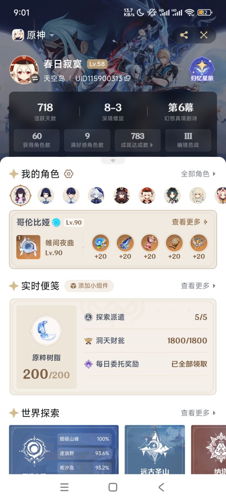 不是强度党,对深渊剧诗幽境危战之类的没什么要求,所以人物面板和战绩都非常难看,对不起orz但光是看看剧情故事,或者慢慢浏览风景就已经很幸福了2333
