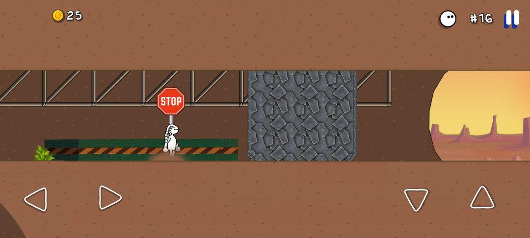 一款2d跑酷小游戏,游戏中玩家控制角色移动跳跃滑铲穿过重重障碍到达终点。游戏难度适中,一共100多关,无广告,可以选关,不能跳关。
