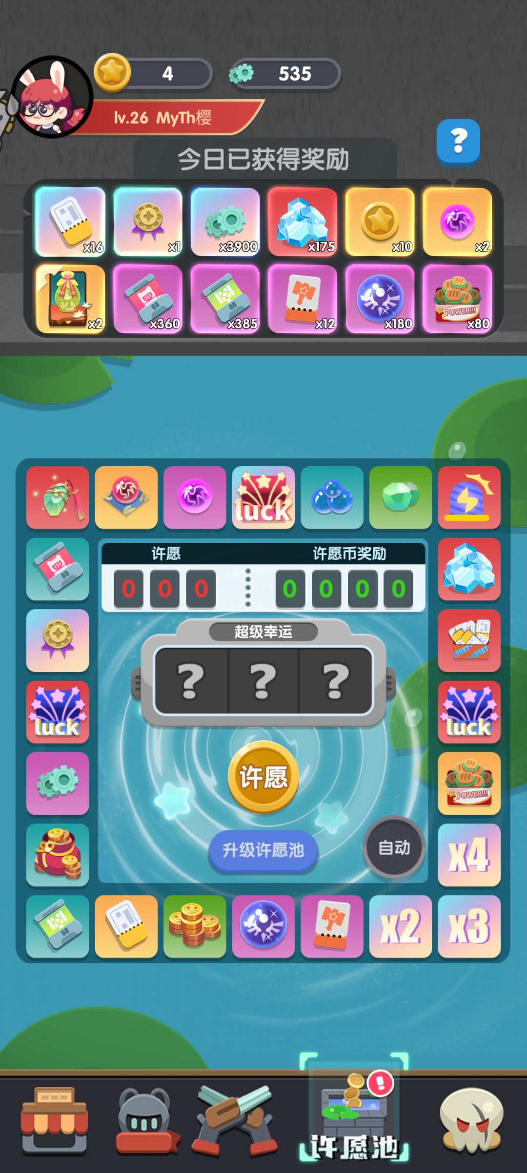 3. 许愿池与资源系统:许愿池系统允许玩家通过“许愿”获取资源(如金币、钻石、装备),但需要消耗“许愿币”。这种设计既增加了游戏的随机性,又为玩家提供了获取稀有资源的途径。