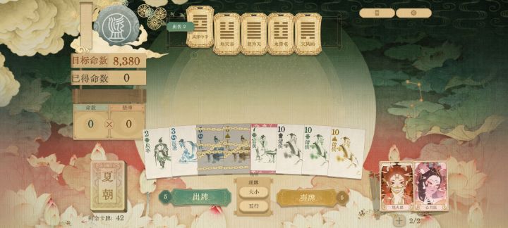 基础规则同小丑牌,只不过将卡牌元素换成了极具中国风的内容,并有符合内容的设定变更。牌面只有2-11,包含王侯将相士农工商设定和金木水火土等五行元素,强化卡牌也针对这些设定进行增强。和小丑牌一样,突出出牌策略性,对钱币的统筹也是核心策略点。有简单的新手教学内容,若玩过一款小丑牌的话,上手几乎是无缝的。