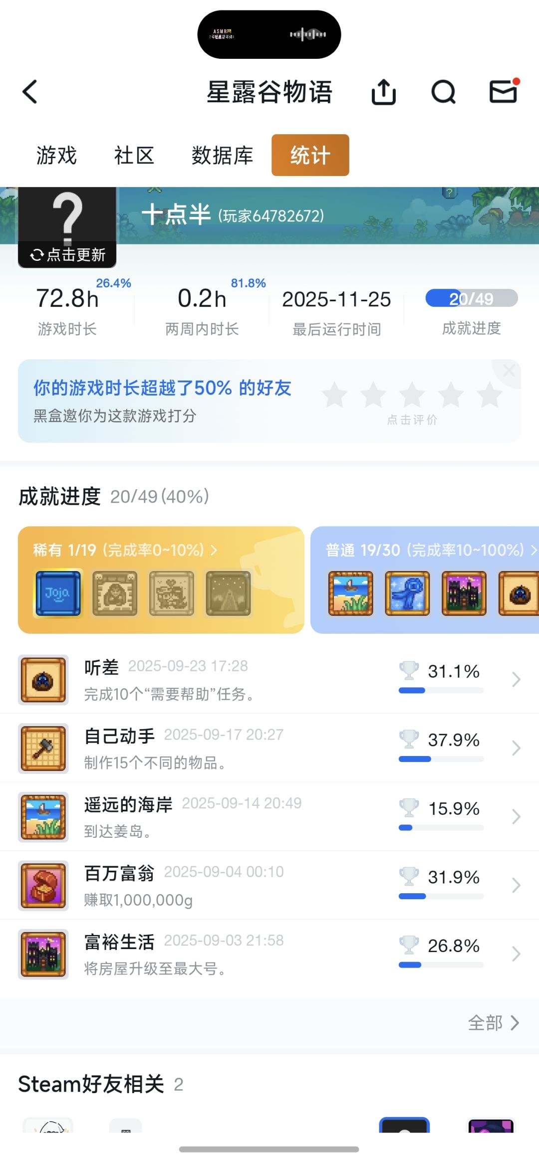 我自己一个人肯定是坚持不下来的,于是便拉了一个人一块儿,方便督促我玩下去。体验了之后就有点儿上瘾了,给游戏里面是6点起,2点睡,给现实里面差点儿也干到这种作息了。刚开始第一个存档不太会玩,就老老实实地一个一个地浇水,一个一个地收割,玩到一年冬。大概熟悉了一些玩法,炸矿,村民好感度社交,以及一些赚钱方法但没来得及实施。那个朋友上学后不怎么玩这个游戏了。于是呢我又拉上我的室友开启第二档。