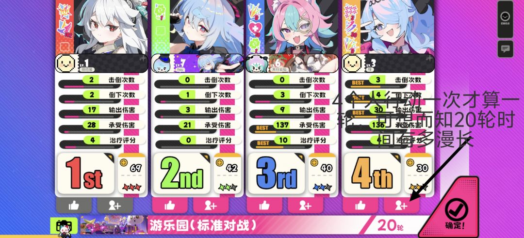 那么正常四个玩家互相对抗的局要多久呢?如图二,我打的第一局就这么久,按照前面说的操作一分钟观战4分钟来说,这20轮里面绝大多数时间都是在看别人操作。只能说想玩的话真得搭配一下别的东西食用了,我是边玩边刷短视频,否则真的能枯燥死。