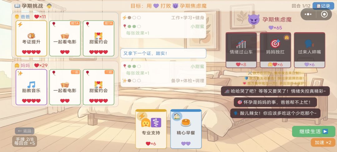 难度分多个档次,恶魔血量会逐步提升,对于爸妈的伤害也会增加,难度梯度体验很好。文本内容具有教育意义,如果能提前避免一些争吵的坑,生活会更和谐。