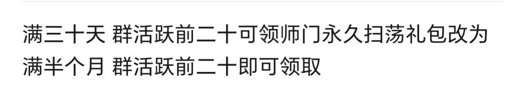 游戏主打“至高武学”,实际上翻来覆去就是忘情天书、霸刀、轮回剑法等几个烂大街的源码武功,玩过几个MUD的都懂。所谓的PVP比赛,无非是比谁氪得多、谁道具堆得高,用忘情天书杀精,毫无套路深度。后期所有玩家都挂机挖矿,内容极度匮乏。而巫师却在不断推出新礼包、新活动——自己进群公告可见,满月、双十一、国庆、三周年……逢年过节必有“赞助满送”“十八倍贡献”“限时礼包返场”,频率之高,堪比专业电商促销。