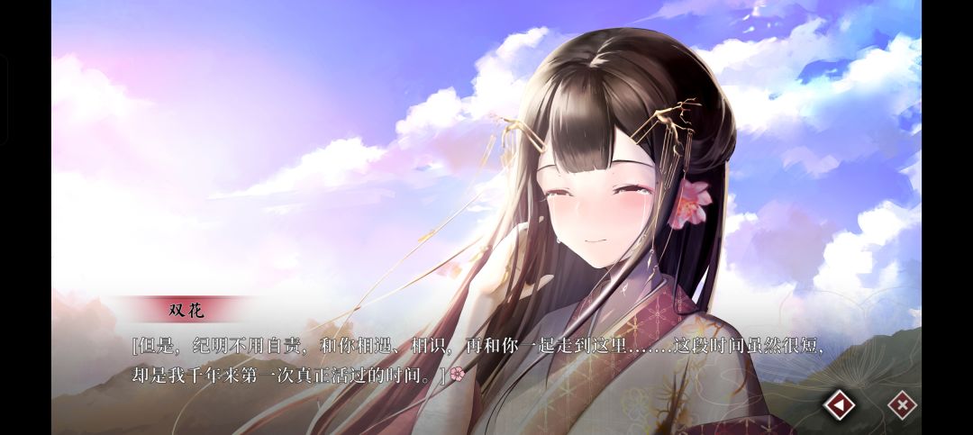 作者曾对桃花源中二人产出情感,一个是郑氏,白天的她沉稳,给人一种幸福感,晚上的她成熟勇敢,给人一种安全感。白天的双花,羞涩,充满少女气。深受封建礼教影响,但他仍对外面的世界充满期许,有勇气去面对一切但最终在离开桃花源后,见证外面的第一缕晨曦时,灰飞烟灭。晚上的双花成熟,是御姐,同时也充斥着内心最真实的情感,会撒娇生气,像极了你的女朋友。不管是哪个双花,都充斥着对外界的憧憬,其中一个沉梦结局,夜晚的霜花塑造了一个虚假的游乐园,让白日的双花和主人公在这里约会,但最终被识破,最终逃不了被洗掉记忆的结局,这是记忆的欺骗,是主人公为了不懈追求双花的自欺欺人。不同的支线中,你与不同的人相爱......做出不同的选择。