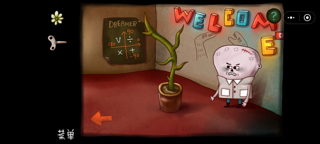 游戏采用章节式推动剧情,每个章节前面都会有一段漫画介绍当前章节的剧情,游戏的剧情就是南瓜先生失去记忆,寻找记忆的旅程,游戏一共有8个章节,结局有be和he,还有一个和游戏制作者面对面的结局,游戏中每个章节都有若干个小空间凝聚而成,游戏中部分解密还是很难的,比如第二章的游戏机,第三章的带有字母e的票,还有第三章的红色积木,很多时候你根本不知道哪些位置有没有被点到,其次游戏中一些数学问题比如24点和第七章最后的机器调表,就算用帮助也对解决难题起不到很大作用,游戏的小游戏帮助类似《天天酷跑》,只要累计200分就可以得到提示。
