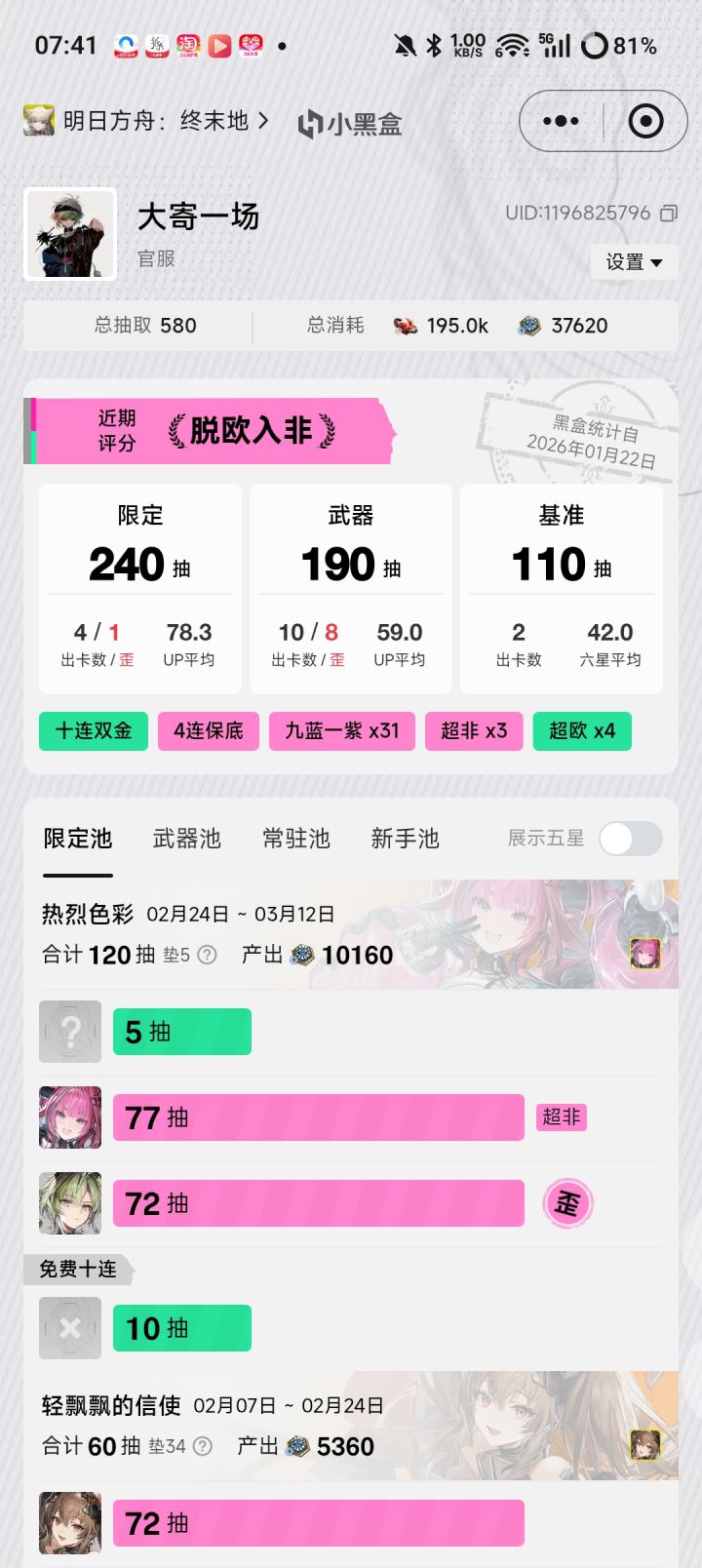 大部分游玩时间是在电脑上,等级55级。虽然说前瞻直播改的点都在点上,但是我没想到前瞻后的今天我会因为抽卡破防写差评(以前我觉得因为抽卡写差评纯没事做)但是我现在才知道原来sb鹰角角色池抽满120抽之后武器池80抽的保底都攒不到😅,毕竟之前在相关的抽卡规划视频下面有人分析角色池非武器池能稳吃保底,但是我抽满120武器池在碎玉的情况下才70抽😅。当然其实我也想过改抽卡的底层逻辑但肯定不行,因为补偿会有点困难,所以如果后续鹰角在卡池方面优化无非是加入类似于独立于限定卡池的新的轮换卡池,保底机制可能会跟米池一样或者自己又新出一套。自己玩的游戏也比较多没那多时间去研究卡池和肝地图,与其折磨自己不如放弃。游戏玩法还是可以,箱庭玩法在手游里算不错的,基建玩法在手游里也算新颖独树一帜。但是卡池是我所有游戏里玩起来最破防的,希望终末地后续越做越好吧,但是不会回坑了,哪怕后续福利有增加也是。