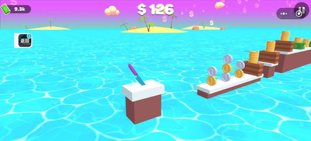 很解压的小游戏~(¯▽¯~)感觉有点像3D版Flappy Bird🐦但是它除了不能碰地和粉红尖刺都安然无恙大致内容是操纵刀翻跟头,然后切东西🔪🍎初见会觉得很有意思,比如图1这个奖励关可以切金币金条和纸钱(见图2而且关卡还挺多,后面也会有些挑战性的关卡有些关卡实在过不去你还可以飞到最上空逃课(但是有些有空气墙 💦它的缺点就是切开的质感都一样,后面关卡会重复,玩久了会感到无聊。Ծ‸Ծ整体上来讲还是可以值得一玩的休闲小游戏