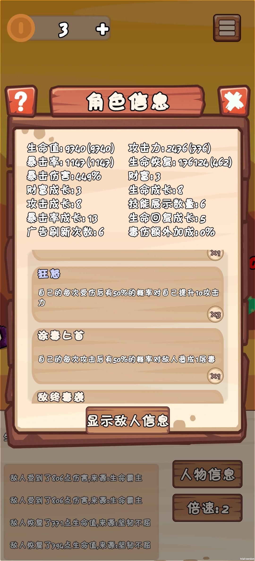 无尽不能买财富值,买了就掉,身上buff太多直接卡死了,主要伤害来源不清楚,只能毒奶,诅咒,暴击值多面发展
