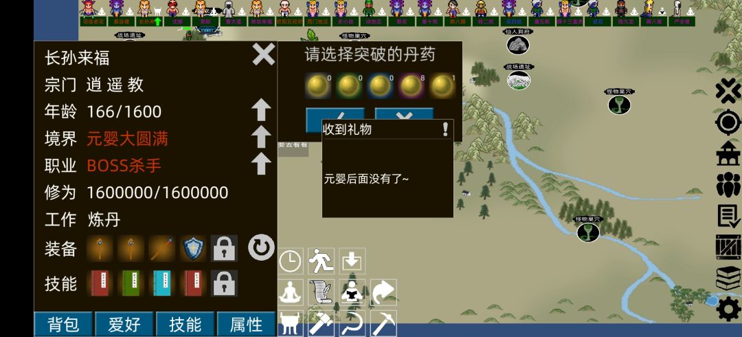 5.怪物掉落修为丹,优先给厉害的吃,一会就到元婴期大圆满。图二