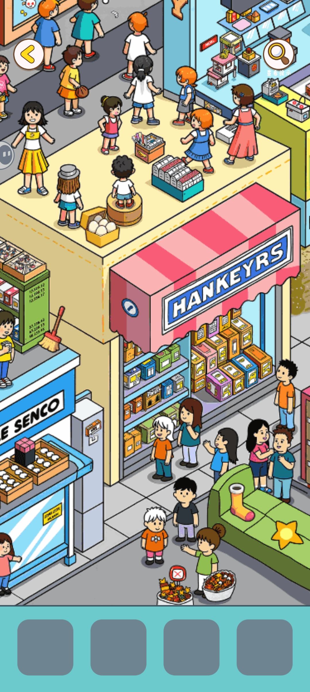 通关打卡,全程没有用提示,主要是不想看视频,所以算下来时常大概每一关六分钟左右,画面算比较清楚,也可以放大缩小,后面熟悉了都开始先盲猜哪个是需要的物品。这边必须得说一点不好的地方,就是有的物品的位置很刁钻,在最上面返回键和查看提示附近,很容易被挡住就看不到在哪里了。最后想问第三十关的两个小孩头发是不是没有上色哈哈哈。