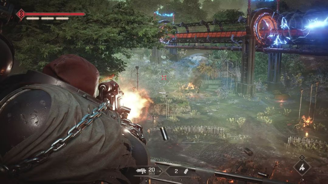 大概过了两三个主线任务之后,这种游玩体验就成了一种负担。由于我是单人玩的,没什么协作,这个游戏的游玩体验就越来越像一眼望去长达八个小时的重复,因为他的爽点太固定了,就是跑去战点然后射击、攻击、处决,然后去下一个地方,这都不提怪物种类基本大差不差。或许这个游戏主打的部分是多人,但是这个单人体验未免太重复了些,哪怕是boss我都觉得流程上没有什么很有记忆的点。你说调高难度就有挑战性了吗?或许是,但是不一定,因为整个游戏的系统上就没有很让人觉得很有操作的点。一堆小怪一梭子扫死一堆然后和精英和boss来回跳来回弹的感觉又让我想起了真三国无双,想想三个人能把地图从头到尾打穿,还真挺夸张的。