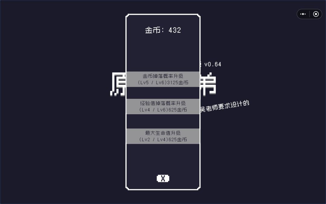 这是一款像素风的成长型肉鸽游戏,游戏有一定的成长系统,通过击杀怪物有概率掉落金币的方式,获取升级资源进行局外的永久强化,游戏当前版本有两个角色,分别为猫瑞和多莉,个人认为猫瑞比多莉强多了。不同角色拥有不同的技能。当前游戏版本一共只有三种武器。分别为飞刀篮球和守护剑。建议新手使用飞镖,之后可以有一定身法的可以使用守护剑伤害较高,如果觉得自己身法足够好的话,可以使用篮球,因为这把武器需要一定的运气。