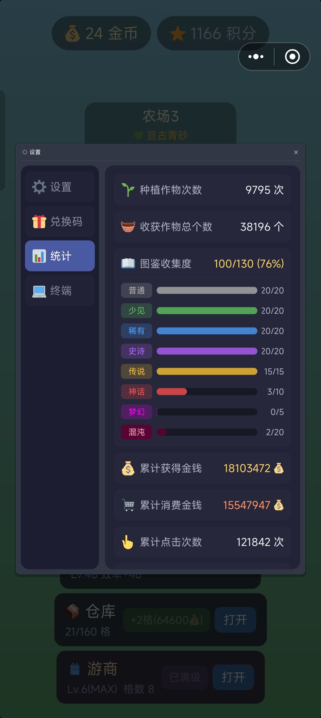 还是很好玩的,适合摸鱼拿出来戳几下。希望改进几点:1有多块土地时来回切换照料很不方便2希望仓库增加一个留种,不然一不小心全卖了3图鉴里每种植物增加一个介绍,不然分不清哪块土地种什么植物收益更大4神话以上植物不能种植,收集难度太高5土地删除的时候能不能返回一些星星,这玩意只能成就获取太难得了,或者增加别的星星获取渠道