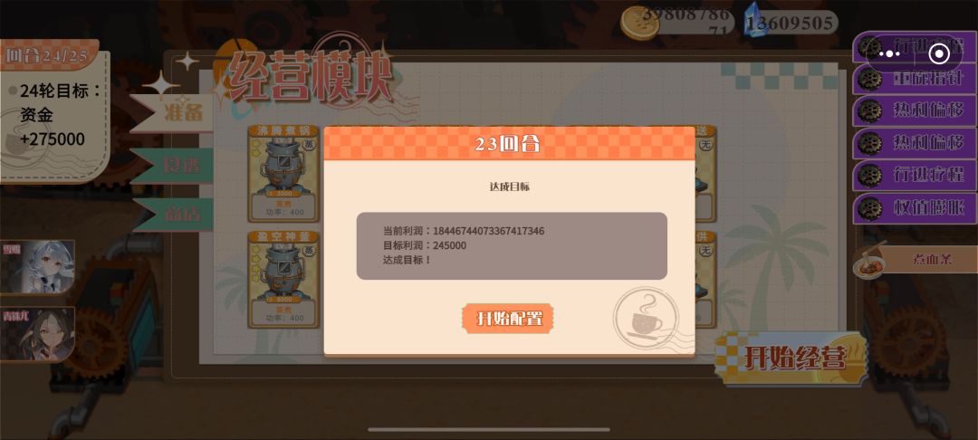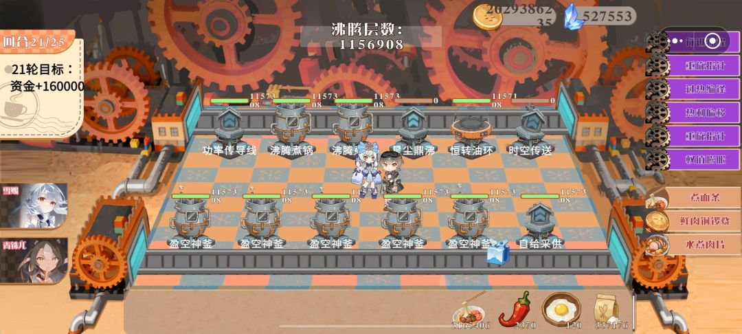 只不过感觉在整个游戏的框架上面略有不足,首先是关卡开局以后没有存读档,如果中间退出来以后,之前的进度就没有了,还挺伤的;其次有几张bug卡好像效果没展示出来,不知道是为什么;另外,有一把我二十关以后开局显示3w+沸腾值,然而产线卡的功率完全没有提升,功率机和烹饪站的加成计算也怪怪的,最终结算也是按照基础功率制作菜品,少了数值爆炸的美感,so sad(⋟﹏⋞)