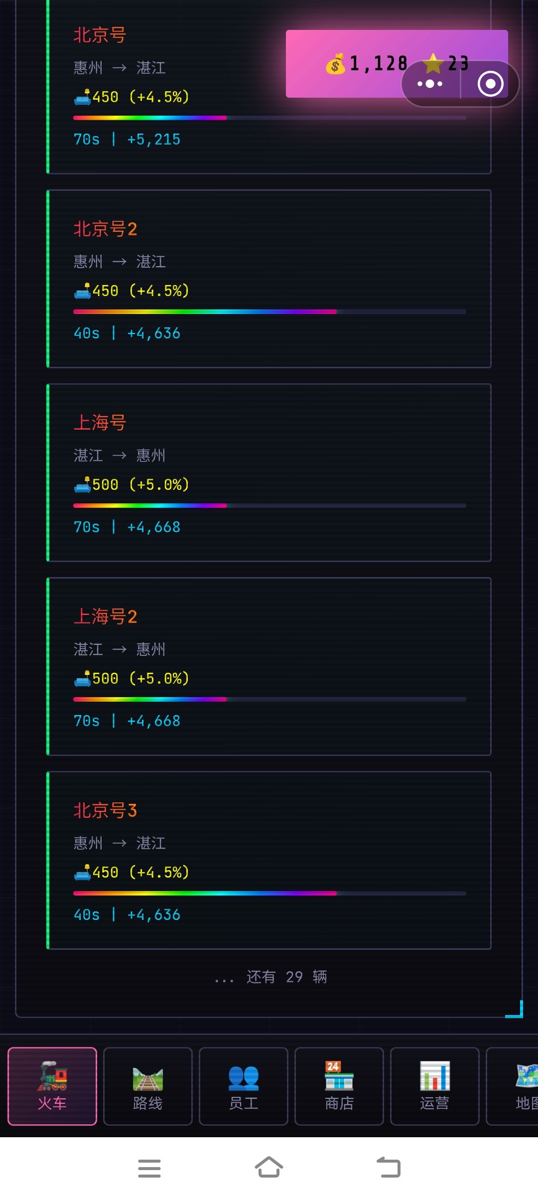 有bug,我总共才20辆车,我把低阶车停运后换成高阶车运行,最底下显示了更多的车在运行,收入也增多了