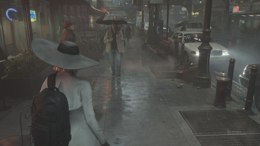 开头的格蕾丝雨景街头确实有被那个表现力震撼到(如图二),可一旦进入室内解谜阶段那个表现力拉胯好几个档次。可能这种阴暗的室内解谜确实不好做视觉表现吧。