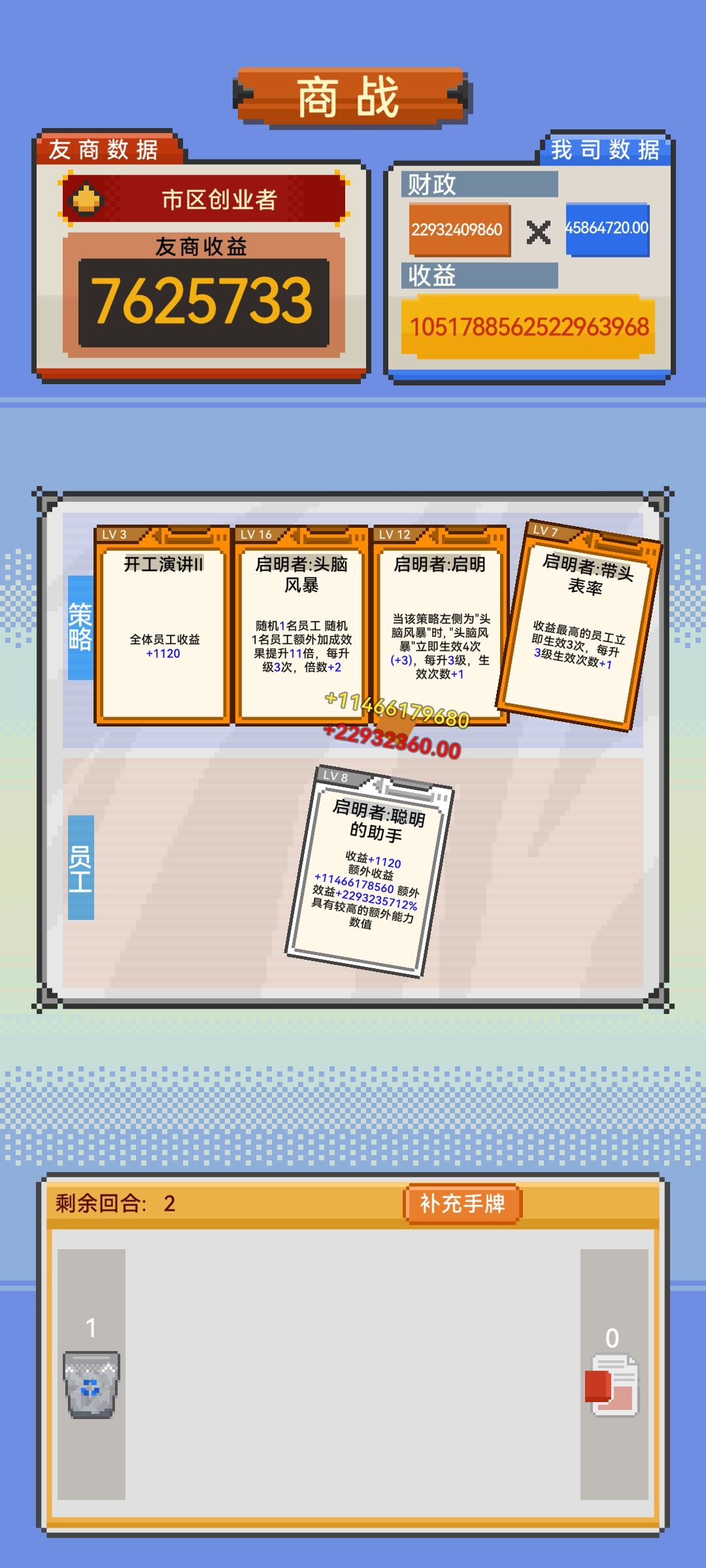 感觉游戏角色并不太平衡,启明者卡牌为数值翻倍,且可以多次进行翻倍,只要凑齐卡牌,数值就很爽。但是其他角色玩着感觉有点吃技术,而且操作后还没有启明者数值膨胀的爽感,希望可以给其他角色增加点关键卡牌,可以达成条件更难,但也得让他有膨胀的机会,不然体验启明者后有点不想玩其他角色