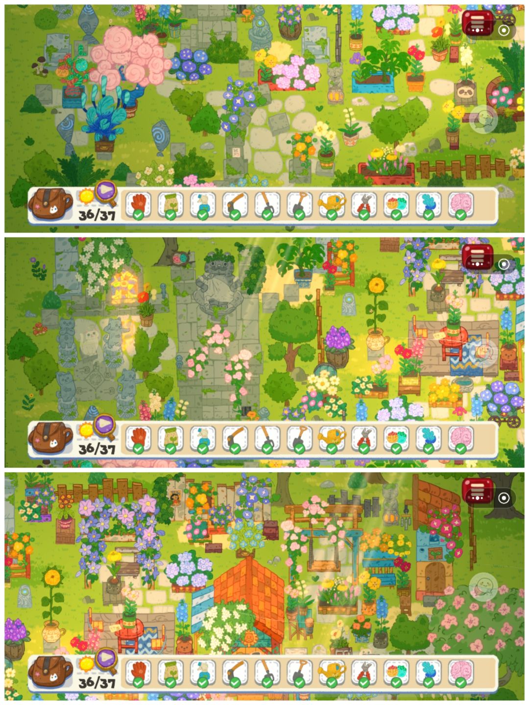 手绘的画风很纯真可爱,音乐也很舒缓,并且碰到收音机真的可以切换音乐哦!感受到了创作者的用心,找猫猫的时候,每只猫猫的叫声都不一样。感觉自己玩的有点囫囵吞枣,没有好好放大体会每个小房子的细节。如果是平板体验感应该会更好,手机放大后影响整体房屋画风观感局限性。解谜也比较愉快,互动周围都有提示去。硬要说的是第一个找狗狗的隐藏关卡,对频闪光敏感的人,玩这关会比较累眼睛。
