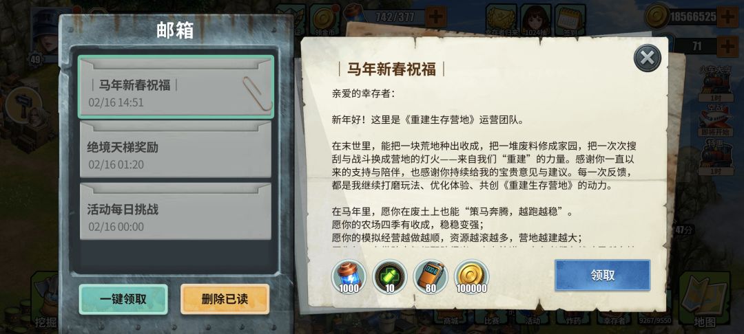 可玩性还是有的,我现在目前来说玩了两个月了,也算是初入了,每天肝肝地图,用体力消耗完,就是冲雷达塔,然后 那些英雄的碎片只能说看运气吧,有些人欧皇,运气好直接就出好角色,而且它有保底,其实20就可以出一个 SR 的,或 SSR,然后那个幸存者的那个活动一定要搞,那个可以指定一个 角色,比较强势的角色去抽,反正一个星期的活动,就算太非酋保底也是可以抽得到的,但是它每天只限十抽,保底应该是70,刚好一个星期,然后如果说新手缺资源的话。前期可以先把地图上的资源全清掉,再清下一个。然后你觉得后面,你觉得那些资源用不完了,你就可以清你所需的资源,干度也还好吧,不算太干。呃,就是有的时候种田的话,可能你要 花个几十分钟去种田,福利方面也是可以的,就算是妇女节,它也是有送奖励的。过年的时候送的奖励多一点,新手的话也很好拿抽奖券,你想囤也可以,不想囤也可以。反正你每天就囤个10抽,然后就应对第二天的幸存者活动就行了,可能10抽都不用,5抽就够了。每天都会有送5个的,然后送完1000多抽