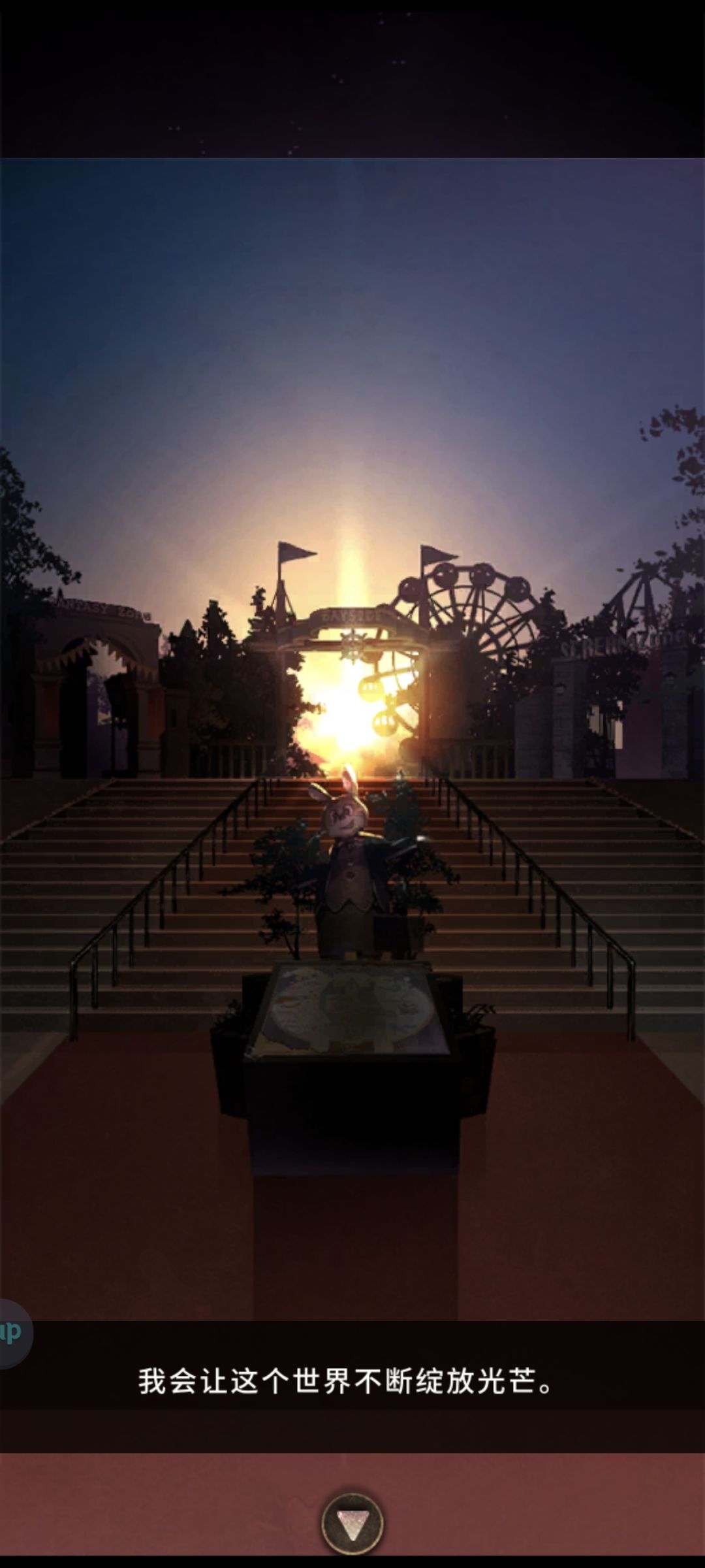 温馨中带着淡淡的忧伤😐谜题特别特别简单,一个提示没看就过了,结果成就全达成要看15个广告……这点有点烦下载之前很怕会恐怖,但实际上可以说一点都不恐怖,甚至说鬼屋里面都不是很恐怖(最恐怖的感觉是里面小动物的牌子)剧情的话…主视角“我”应该就是兔子lucky,通过解密一点点让游乐园的设施正常运转起来,即使是最后打开了游乐园的门,依然没有人再来了…看得人有点难过,后面还有很多人的留言板有点铃芽之旅的感觉不过我还是很好奇为什么这游乐园会倒闭啊,看留言感觉生意不错啊