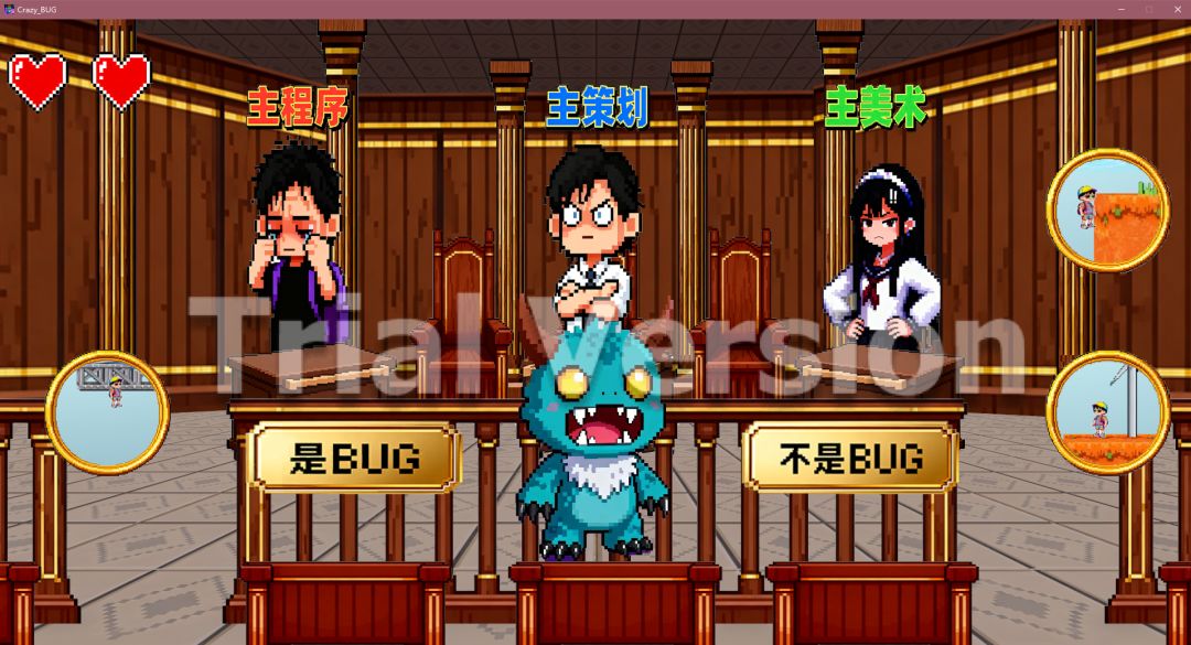 横版动作类游戏,没做基础操作介绍,设定很常规,摸索下也能知道如何玩。游戏其实做了三部分内容,第一部分是横版动作闯关,看起来有很多BUG的样子,能遇到各种穿模和落点异常,通关的位置也很奇葩。第二部分是对制作者的审判,只是简单的判断对错,突出审判剧情效果。第三部分是射击,有点像火凤凰,发射子弹打上面掉落的字体。