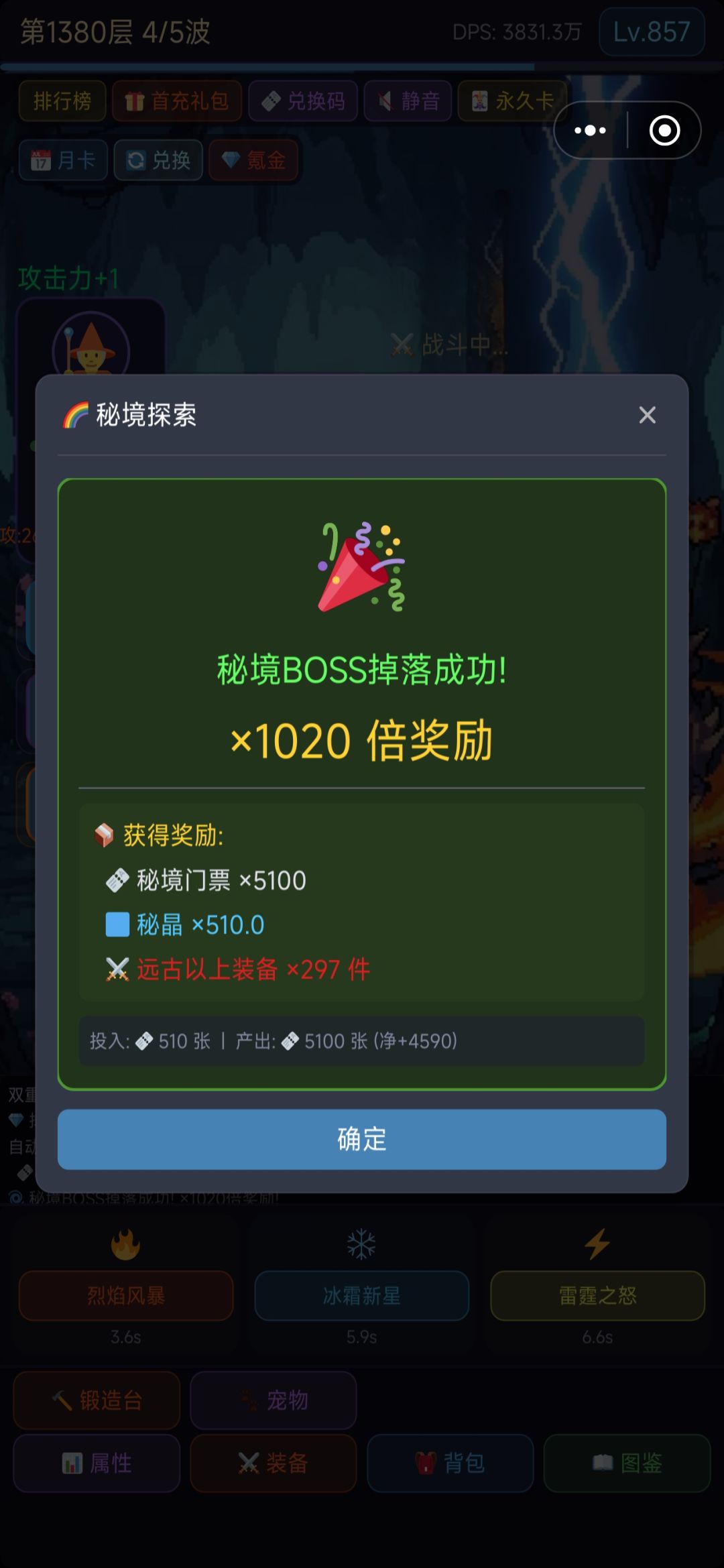 开始以为概率比实际的低很多。但是挂机后再来玩,概率又正常了,几分钟就有好几次大爆。
