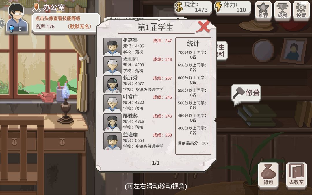 然后,期末考试一次比一次差的情况下,我终于坚持不住,查了一下攻略😂,才发现大家一开始都没办法教好,而且这个游戏重点居然不是当老师,而是挣钱。一气之下,我就放下了游戏。🙅这大概就是这个游戏的缺点吧。