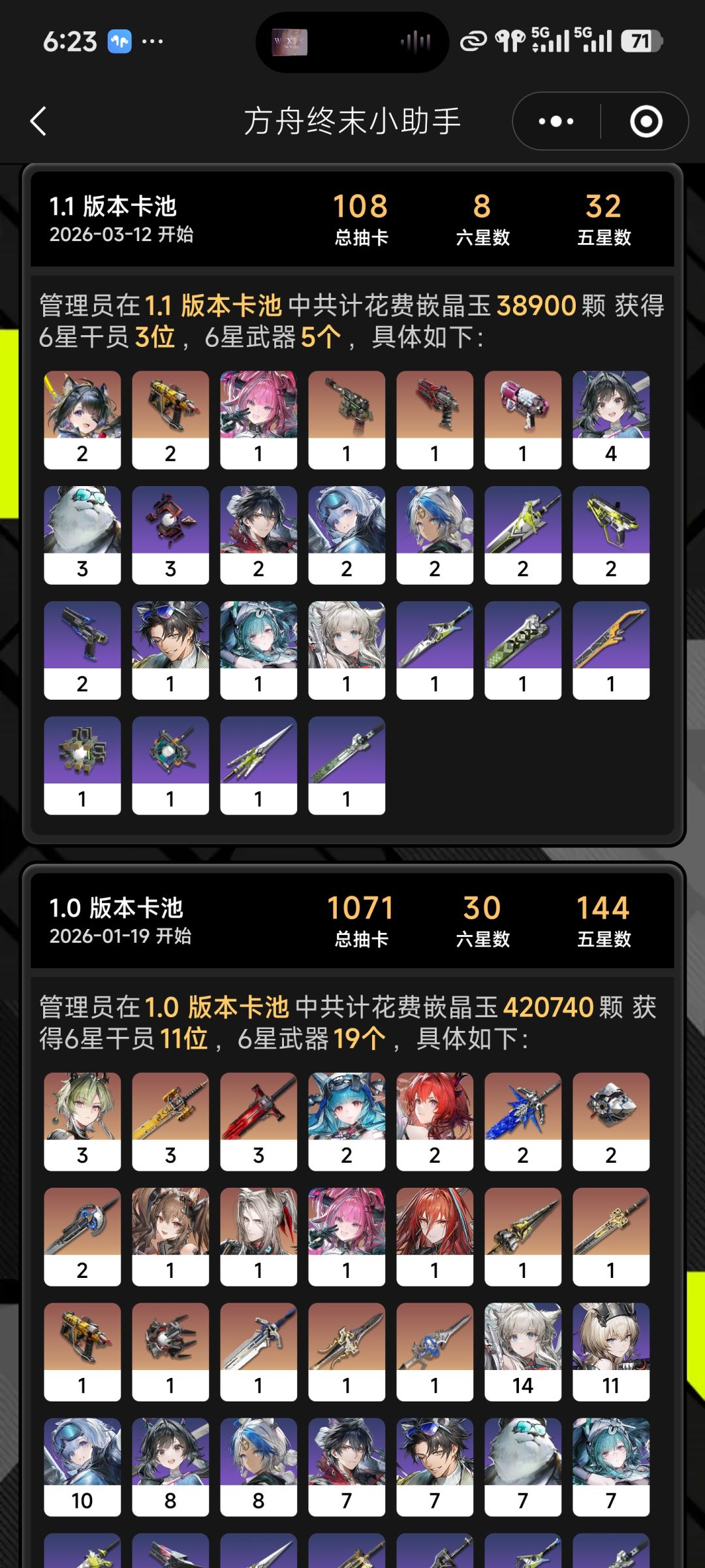 游戏还是挺有意思的,但是玩了两个月了,新鲜感就没了。现在我也没心情想着去改进啥流水线了。你们可能会说为什么我不直接搬别人的蓝图,我只能说玩游戏还是得靠自己。每天做个日常就下了,两天采一次材料。我虽然也不是啥都玩,但是大部分玩法我还是体验过的,除了那个种菜的玩法外我都玩过。还有就是那个基质和装备,这个和声骸,圣遗物有点不一样,后者运气不好就可能会一直刷不出来,这游戏好歹还有个保底,不会遇到刷不出好词条就一直刷,刷到出为止这种究极难受的情况。至少到现在没有遇到像是玩鸣潮的时候那种绝望感,双暴根本刷不出来,特别是刷卡提希娅的时候,融了几百个啊,到现在还是个半成品,双暴加生命值百分比这仨根本出不来,现在算是勉强能用的面板了49800多生命值73%暴击271%爆伤。该难受还是会难受的不会说什么多多少少的问题,不是说事不过三嘛,我就是有这么一个阈值,超过三次会不耐烦,超过5次就有点难受了,超过10次就麻木了。除非是没有体力了,不然我会可能会一直刷。大世界方面也就是拉电线,架滑索,放矿机,找宝箱和谜质。就和鸣潮,原神跑图一样,不过是过程要靠机械。这游戏遇到的大部分烦恼和不顺心的事在其他游戏都经历过太多了,也有点免疫了。但是我还是得打差评。开服的时候玩的还是很难受的,至少开服玩鸣潮和原神的时候没这么难受过。抽卡方面,我不好说,我每个卡池都歪了,但是最后也都抽到了。现在运气稍微好转了一点,所以目前来说我还能接受。至少没有遇到鸣潮满命歪5次的情况?好吧,我也不打算抽满命了。抽怕了,700多抽6+1。最后嘛,感慨一下,我也没想到我能玩这么久。另外说一句,我鸣潮是全图鉴,原神虽然不是但是也有50多个五星角色。如果终末地以后还玩的话也会是全图鉴。