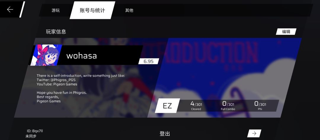 ,第一次玩pjsk的时候就听说phigros这个游戏了,但是一直感觉难度高就没玩,不过这几天玩了之后真感觉玩phigros是一种享受,打击反馈音效好,而且断触的情况也不怎么会出现,感觉比phigrim要好的多,毕竟模仿的还是比不过正版的,并且phigros上的歌还都是免费的,这一点就让大多数音游都难以比得过。鸽游出的律动轨迹我也玩了一下,感觉很不错,不过这次变成歌曲要付费了,但是这也挺正常的,毕竟总要赚钱的。总的来说鸽游的游戏都很不错,尤其是phigros,简直神作一样的存在,期待他们能制作出很好的作品