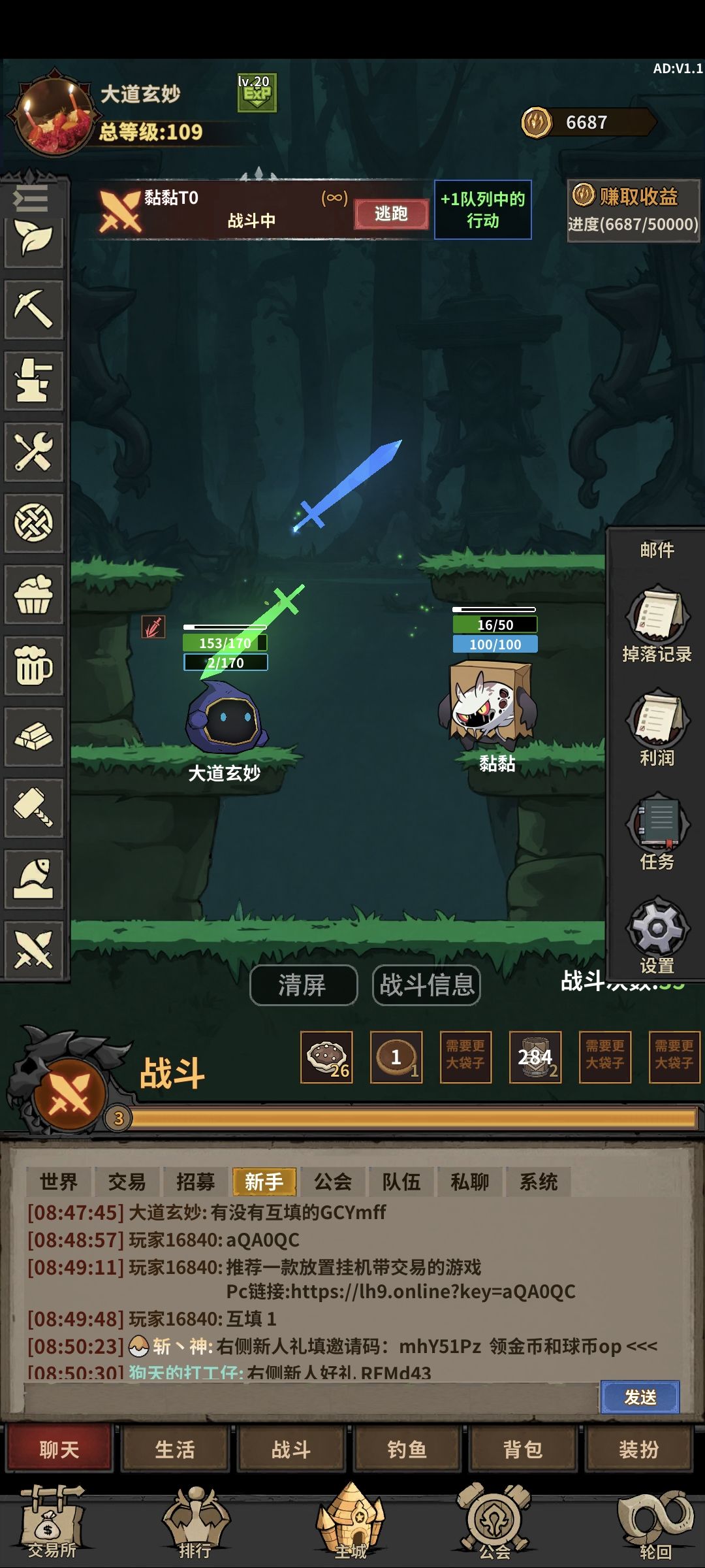 战斗(图二)不够爽,尤其是前期,堪称坐牢。不过这个游戏本质上还是个挂机收菜(离线)游戏,需要大量时间堆积生产资料,然后买卖,搞钱。等资金充裕,材料充足,就可以打造装备,然后接着挂机战斗😅到后面爆更稀有的材料,卖更高的价格。