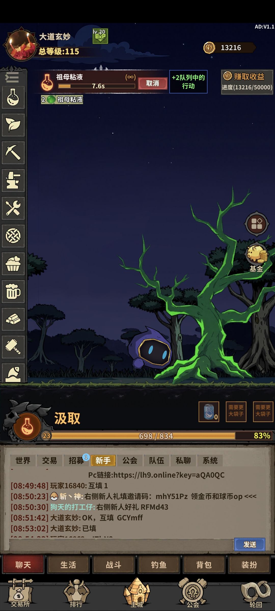 大多时候都是挂机收菜,省心省力,离线时间十来个小时,算得上一个小而精的游戏,游戏最大的魅力就是玩家之间的自由交易了:一看交易行,好些个黑心商人,那价格,简直丧心病狂😋。